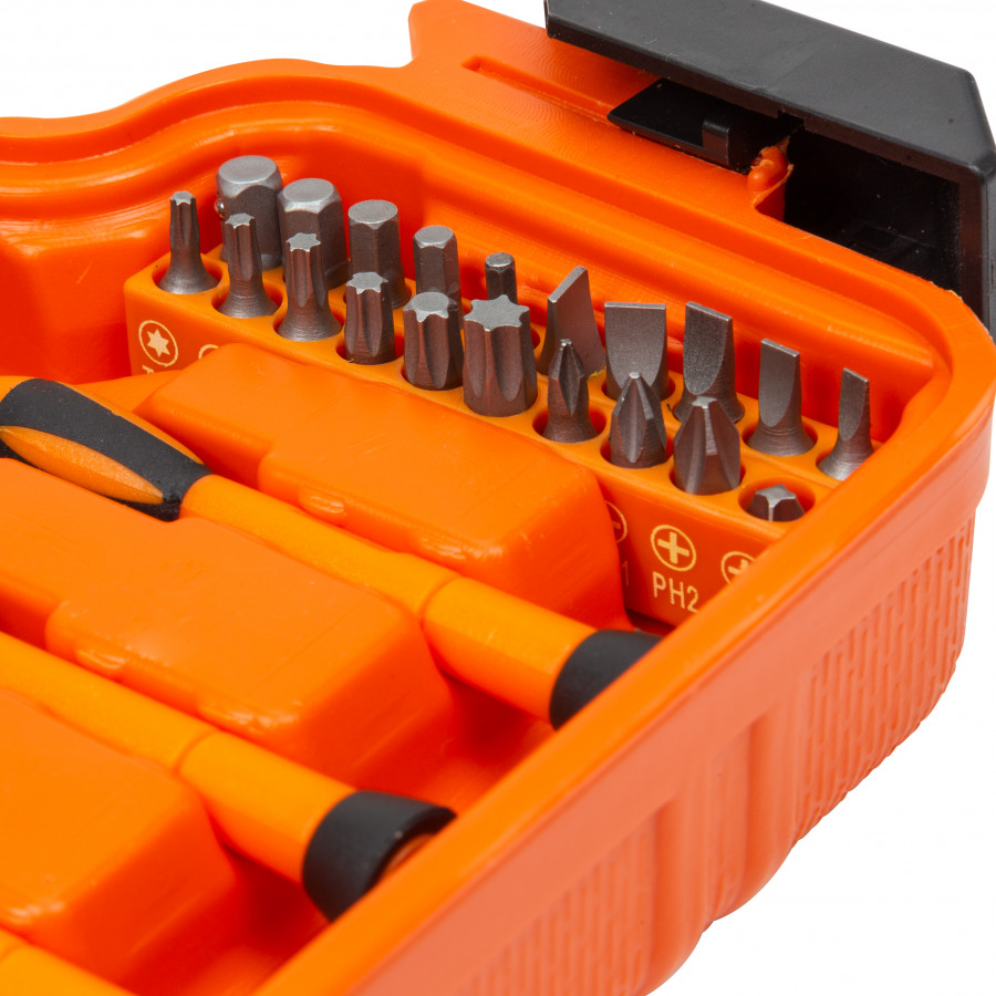 - Зручність використання: Усі інструменти розміщені у компактному кейсі, який забезпечує зручне транспортування та зберігання.