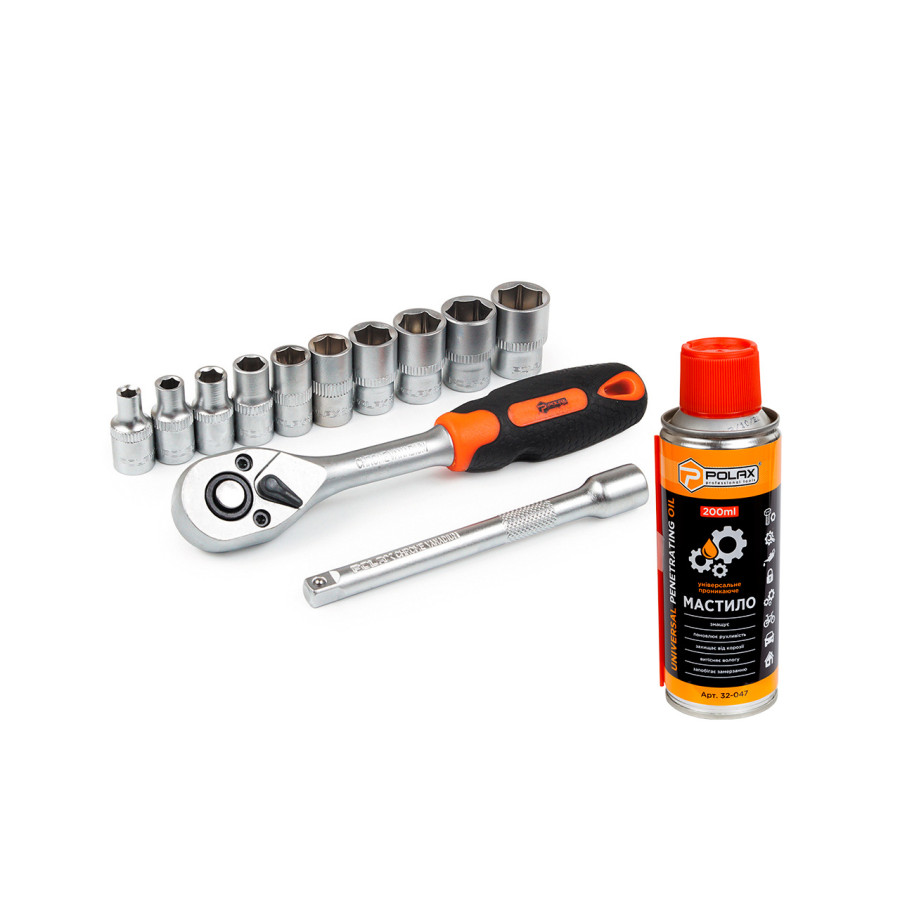 Набір торцевих насадок і мастило універсальне "Рідкий ключ" Polax (332-07) – оптимальний вибір для велосипедистів