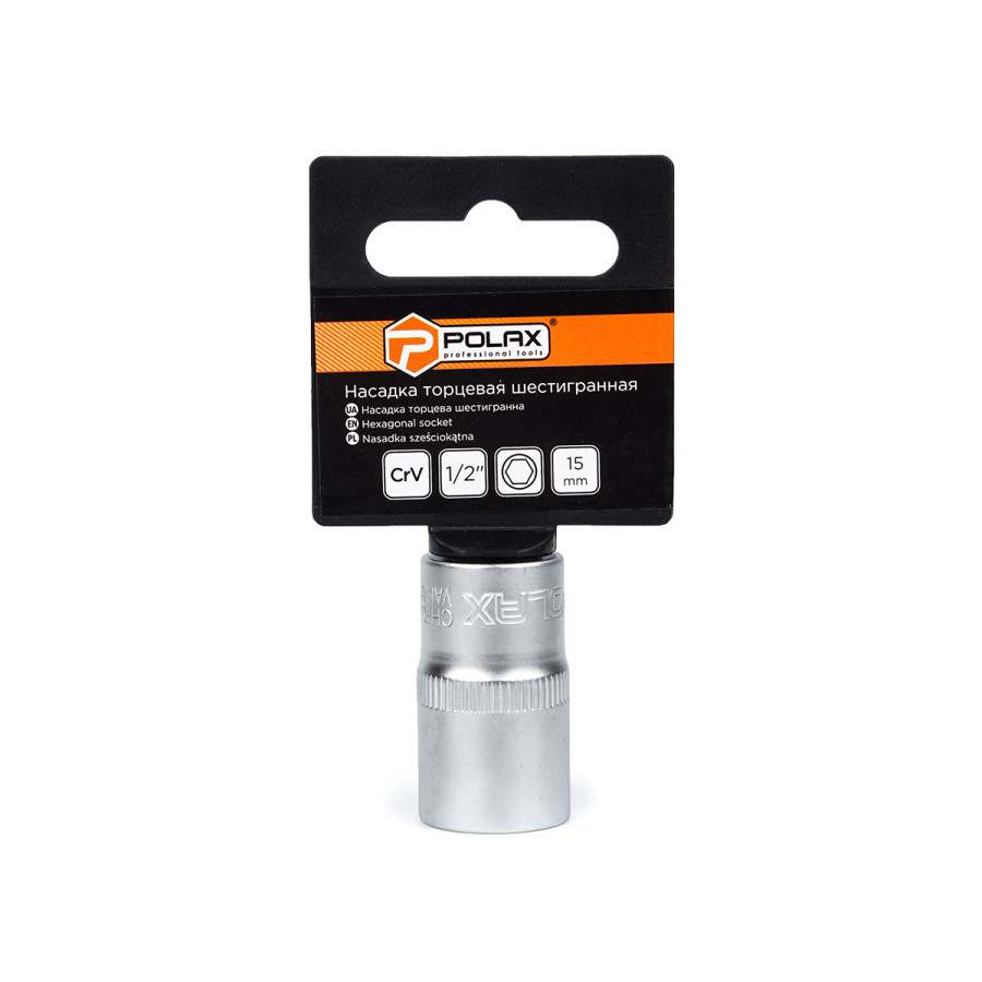 Головка торцева автомобільна шестигранна 15 мм, 1/2", Polax (25-088) — надійний інструмент для вашого автомобіля