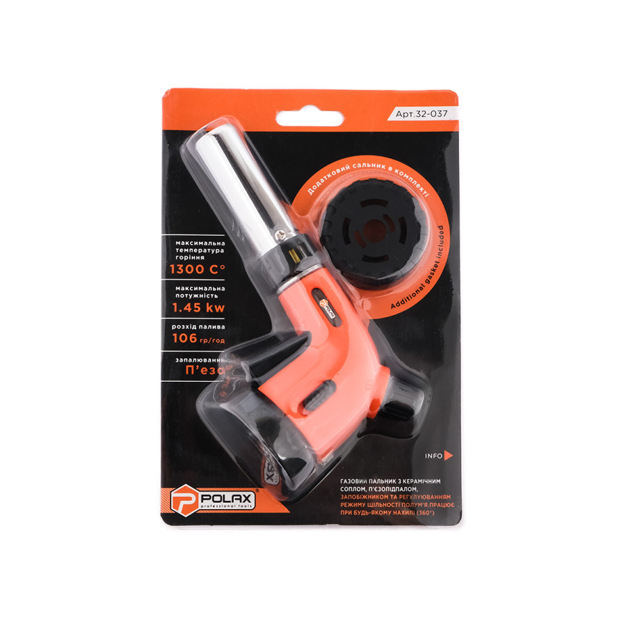 Замовляйте газовий пальник з керамічним покриттям сопла, п'єзопідпалом та регулюванням полум'я Polax 1,45 kW, 1300 °C, 360° у магазині AQUAPOST та отримуйте професійний інструмент для найскладніших завдань!