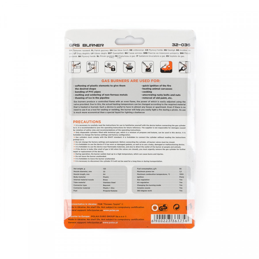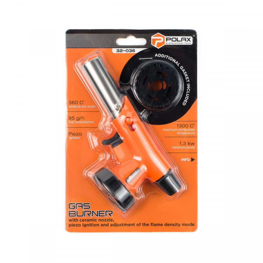 Теги: Газовий пальник з перемикачем режимів горіння, керамічним покриттям сопла та п'єзопідпалом Polax 1, 3 kW, 1300 °C, 360 ° (32-036), , ee79230d, Polax, Газовое оборудование, Газовые горелки, Газовые горелки Профи