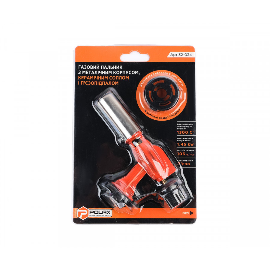 Газовий пальник з п\'єзопідпалом, керамічним покриттям сопла та металевим корпусом Polax 1,45 kW, 1300 °C (32-034)