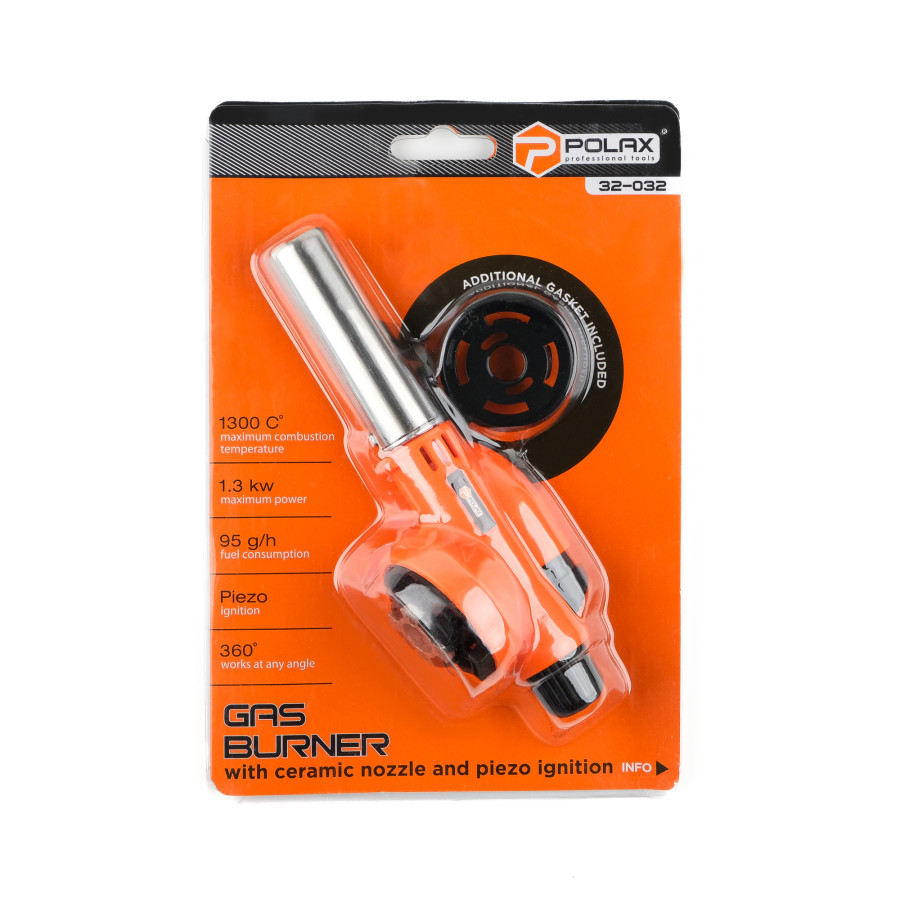 Газовий пальник з п\'єзопідпалом, керамічним соплом та кутом нахилу 360° Polax 1,3 kW, 1300 °C (32-032)