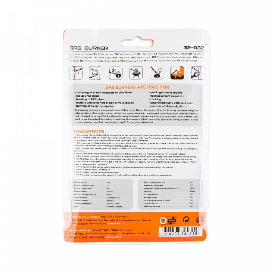 Замовляйте газовий пальник Polax з п'єзопідпалом і керамічним соплом у AQUAPOST вже сьогодні та отримайте надійний інструмент для будь-яких завдань! Швидка доставка по всій Україні та якісний сервіс – гарантуємо задоволення від покупки.