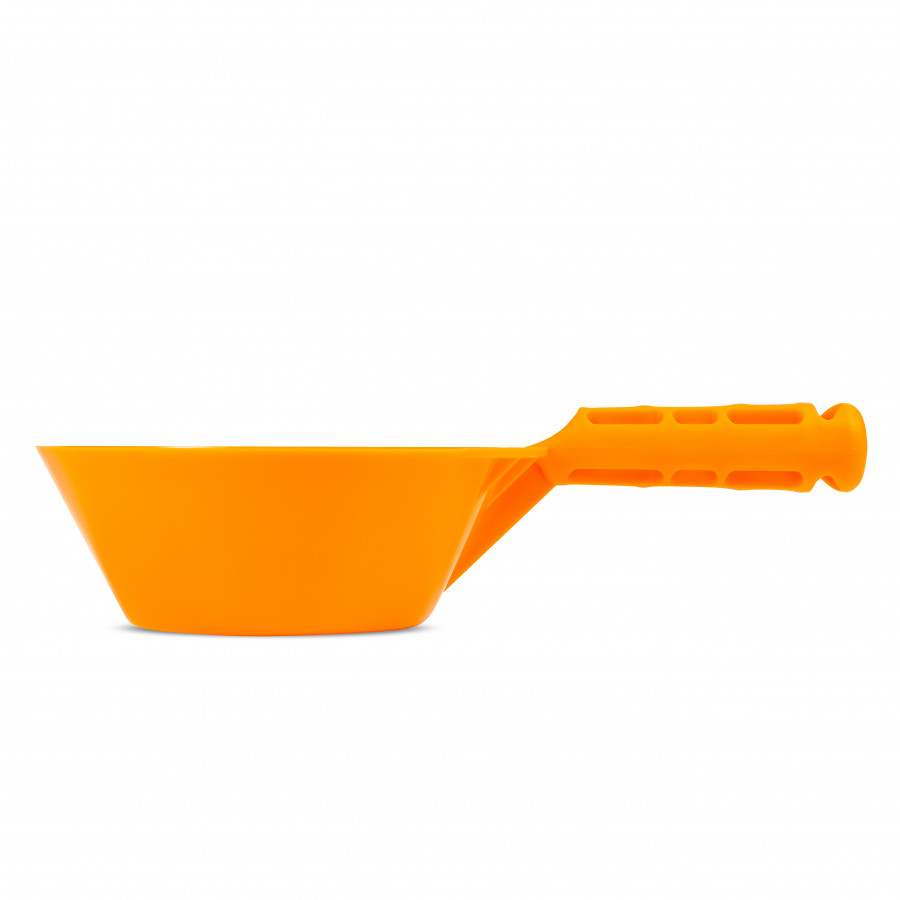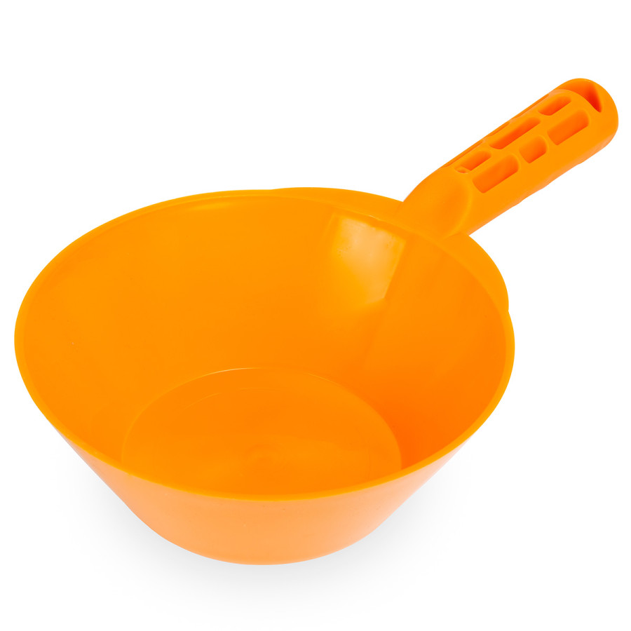- Практичність і легкість. Виготовлений із міцного пластику, цей ківш має малу вагу, що дозволяє легко виконувати різноманітні маніпуляції під час роботи.