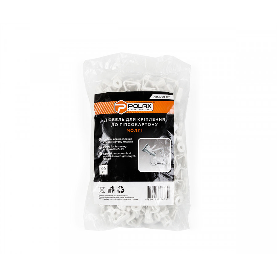 Теги: Дюбель MOLLY Polax для гіпсокартону Преміум 30 х 15 мм, 100 шт. (1000-157), , 1000-157, Polax, Дюбели для гипсокартона, Инструмент для отделочных работ, Материалы для гипсокартона
