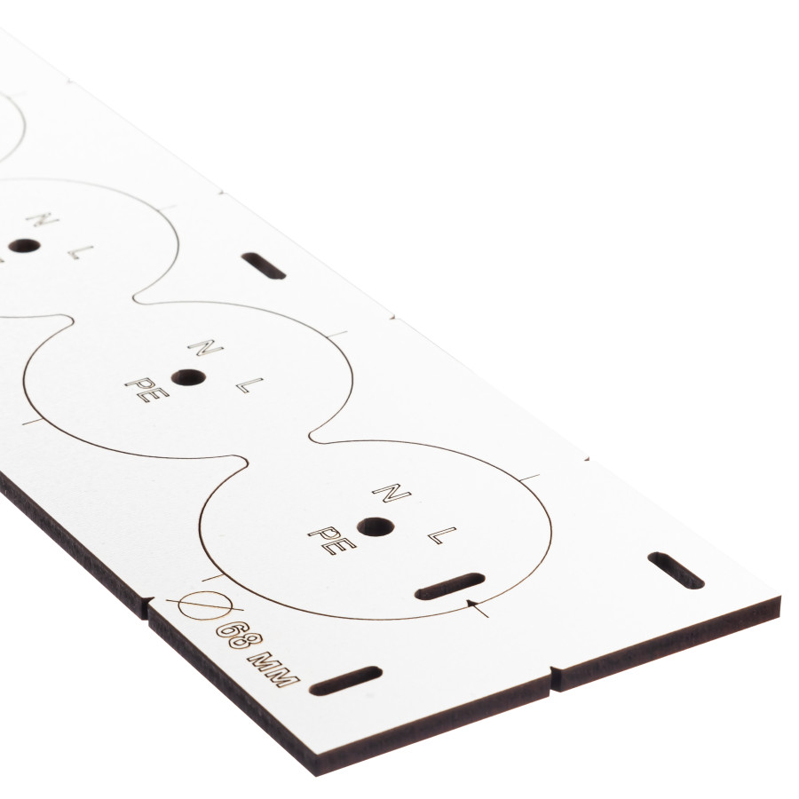 Завдяки чітким отворам та продуманій формі, шаблон Polax дозволяє без зайвих зусиль створювати отвори для встановлення електричних підрозетників у гіпсокартоні, цеглі чи бетоні. Це значно скорочує час монтажу та зменшує ймовірність помилок.