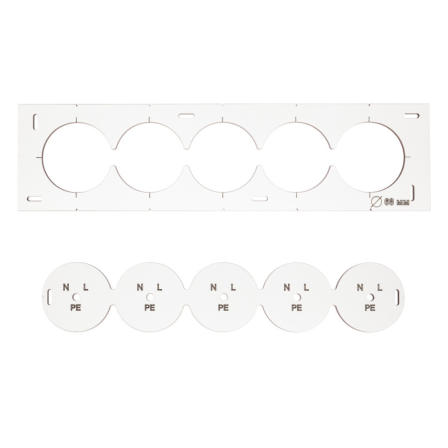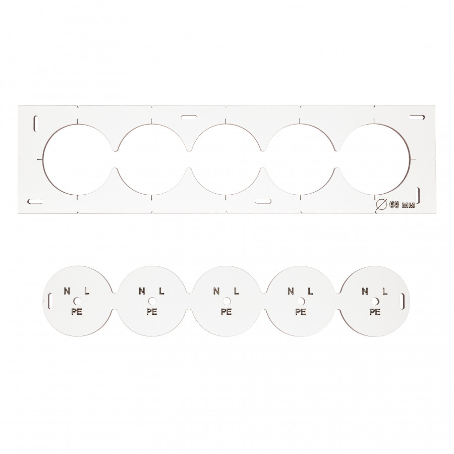 Даний шаблон-трафарет ідеально підійде як для професійного використання, так і для домашніх майстрів, які цінують якість та зручність роботи з інструментом. Завдяки своїй конструкції, шаблон дозволяє швидко і точно виконувати розмітку для підрозетників, що значно економить час та зусилля під час монтажу електричних елементів.