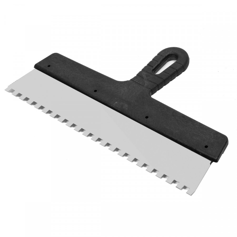 - Ідеальну геометрію зубів: точний розмір 8 х 8 мм дозволяє наносити клей рівномірно, що позитивно впливає на якість укладки плитки.