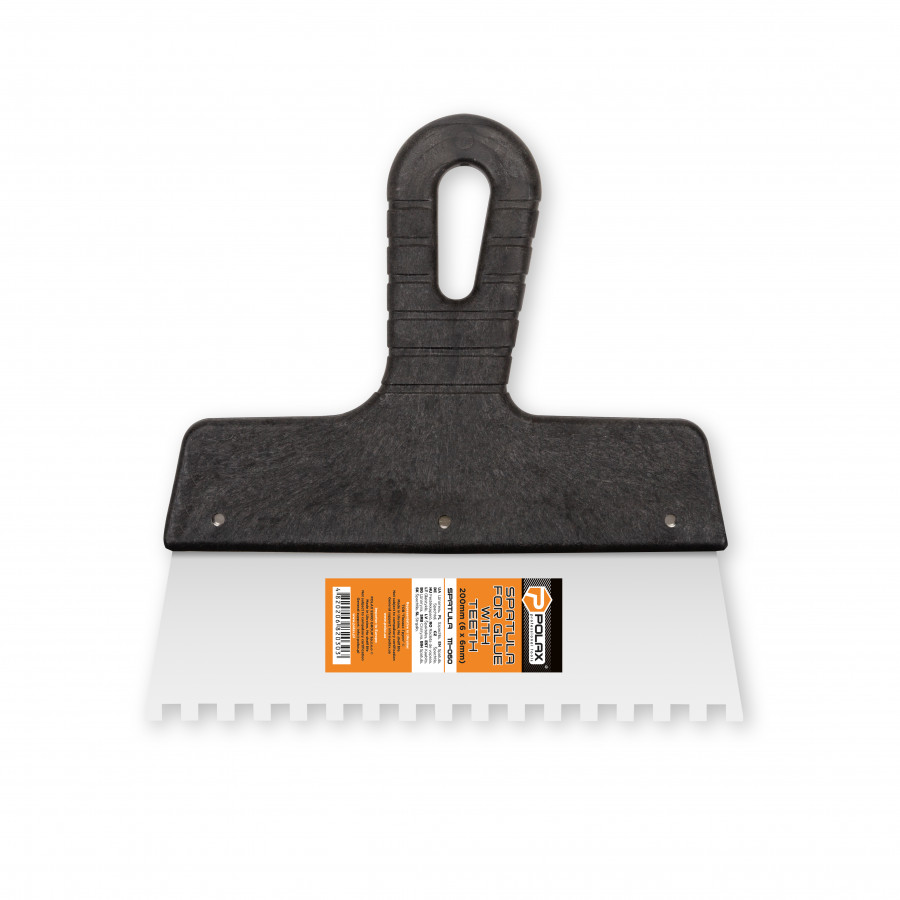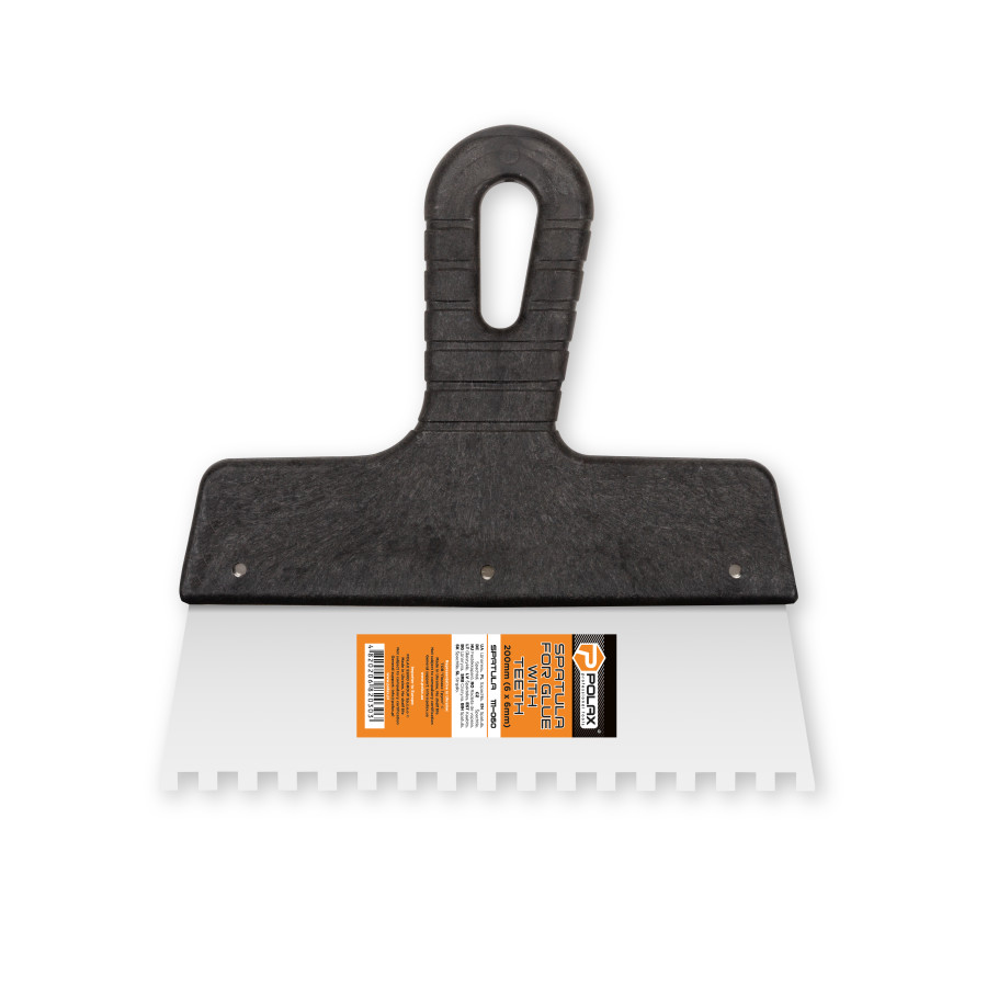 Завдяки використанню нержавіючої сталі, шпатель Polax забезпечує тривалий термін експлуатації навіть при інтенсивному використанні. Полотно розміром 200 мм дозволяє обробляти значну площу за мінімальний час, а зубці розміром 6 х 6 мм ідеально підходять для рівномірного розподілу клею під плитку різного формату.