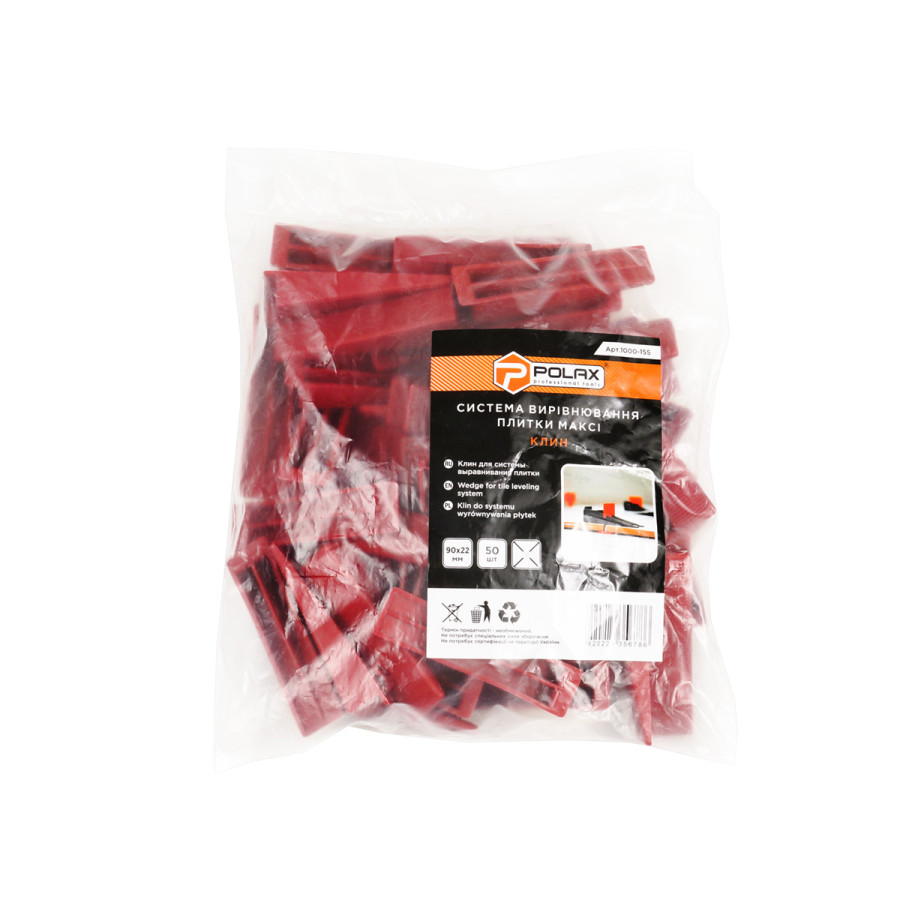 За допомогою цих клинів ви зможете якісно вирівняти плитку під час укладання, що особливо важливо при роботі з великими форматами або товстими плитками. Використання системи вирівнювання плитки Polax дозволить уникнути додаткових витрат на ремонт чи переробку, а також забезпечить естетичний вигляд вашої підлоги або стін.