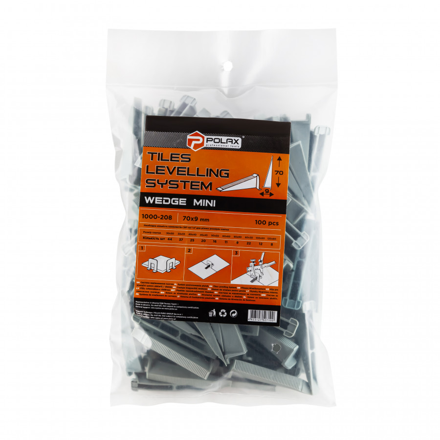 - Зручний формат. Розмір клинів – 9х70 мм – дозволяє використовувати їх для різних типів і розмірів плитки, забезпечуючи оптимальне вирівнювання.