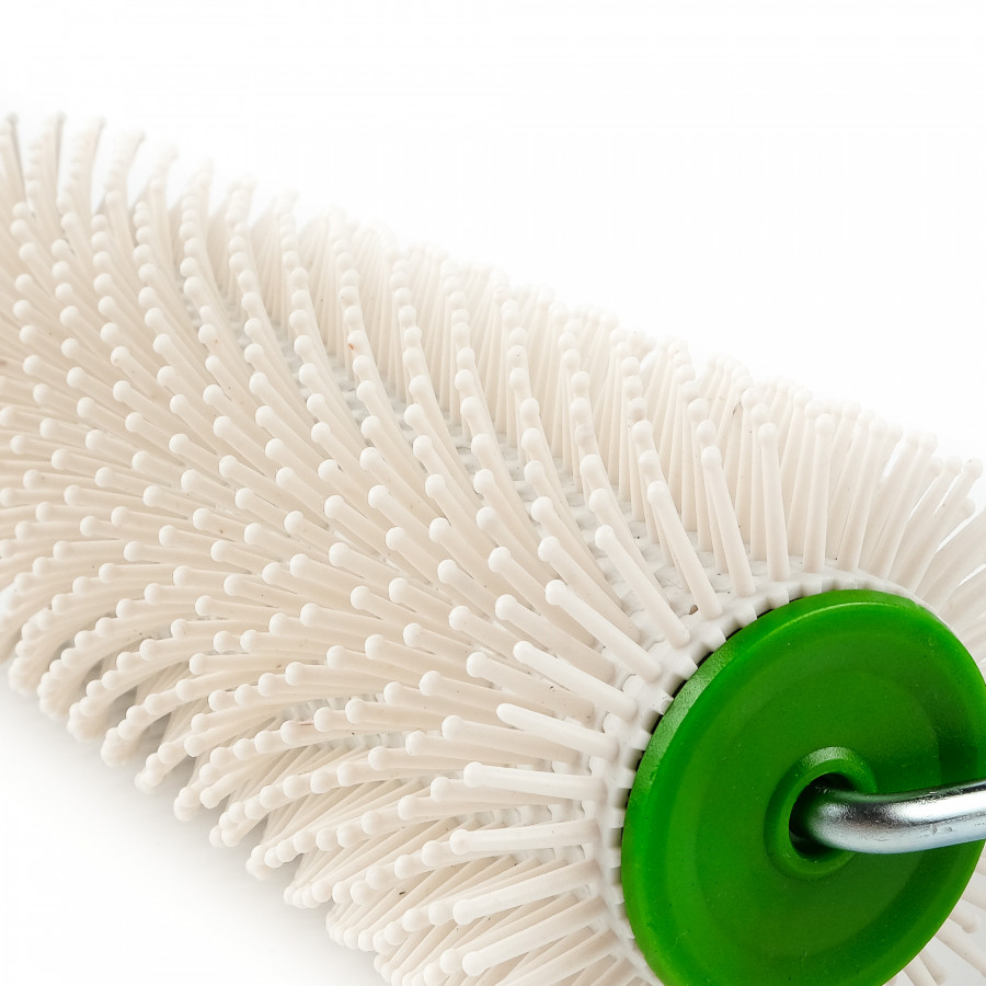 Валик виготовлений з міцного пластика, що забезпечує довговічність та стійкість до агресивних будівельних сумішей. Ергономічна ручка гарантує зручність у використанні, навіть при тривалій роботі.