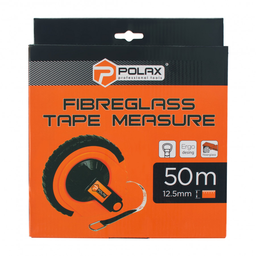 Завдяки використанню скловолокна рулетка Polax відзначається стійкістю до розтягування, зламу чи зносу, що гарантує довгий термін експлуатації без втрати точності. Довжина у 50 метрів дозволяє охоплювати великі ділянки, що особливо важливо для геодезичних та будівельних робіт.