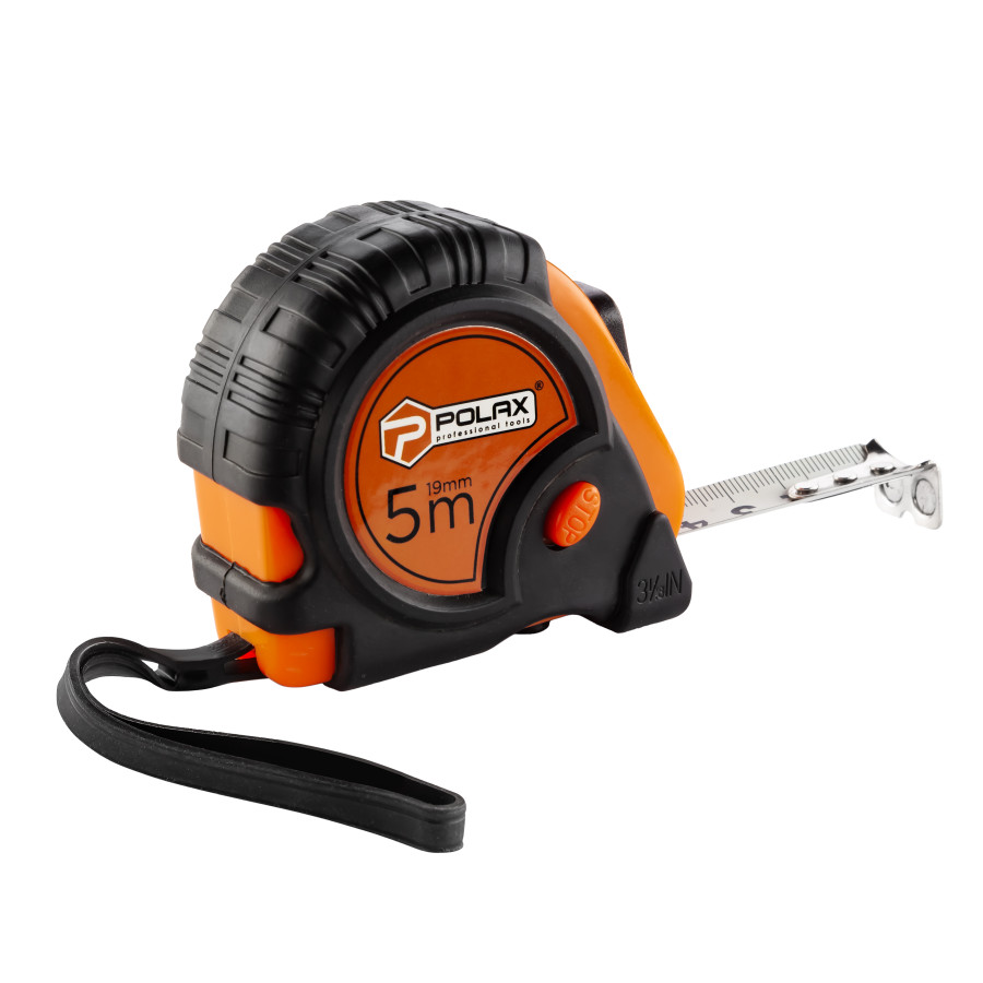 Рулетка Polax вимірювальна будівельна гумовий корпус магнітна 2 стопа фіксатор 5 м х 19 мм (29-017) – надійний інструмент для точних вимірювань
