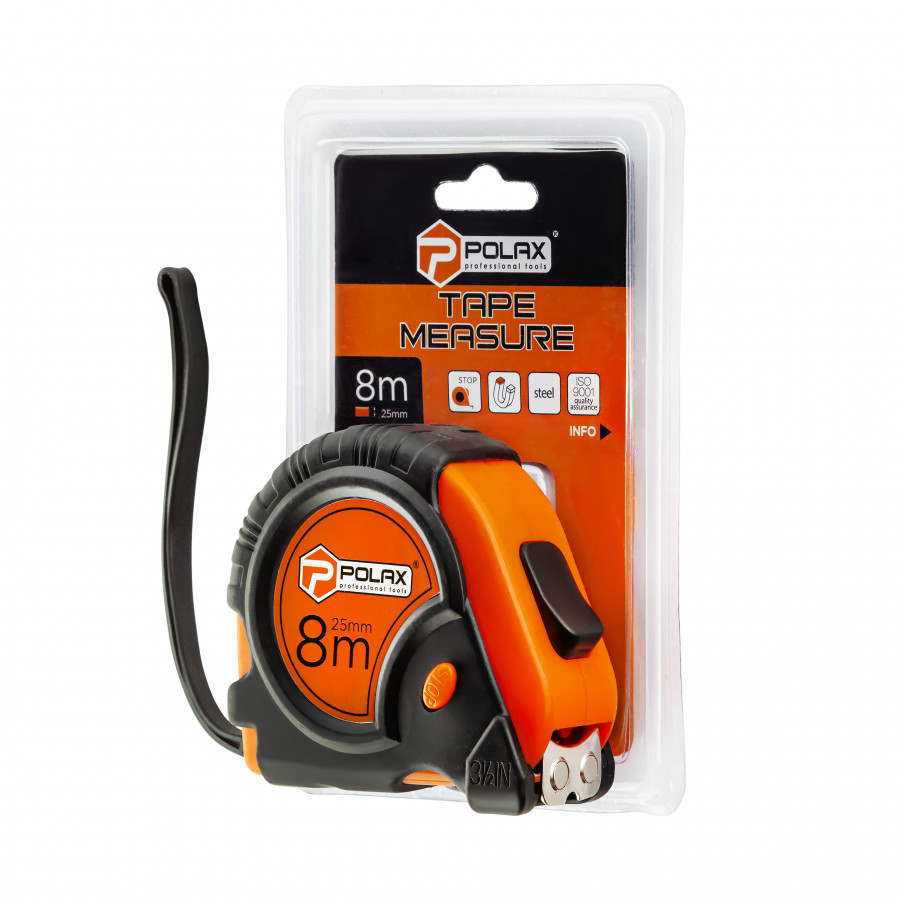 - Назва: Рулетка Polax вимірювальна будівельна гумовий корпус магнітна 2 стопа фіксатор 8 м х 25 мм (29-013)