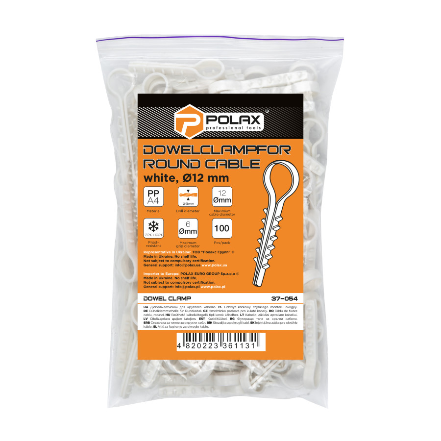 Теги: Дюбель-ялинка (затискач) для круглого кабелю Polax D 12 білий (37-054), , 37-054, Polax, Дюбель - зажим, Дюбель-зажим для круглого кабеля, Крепежный инструмент