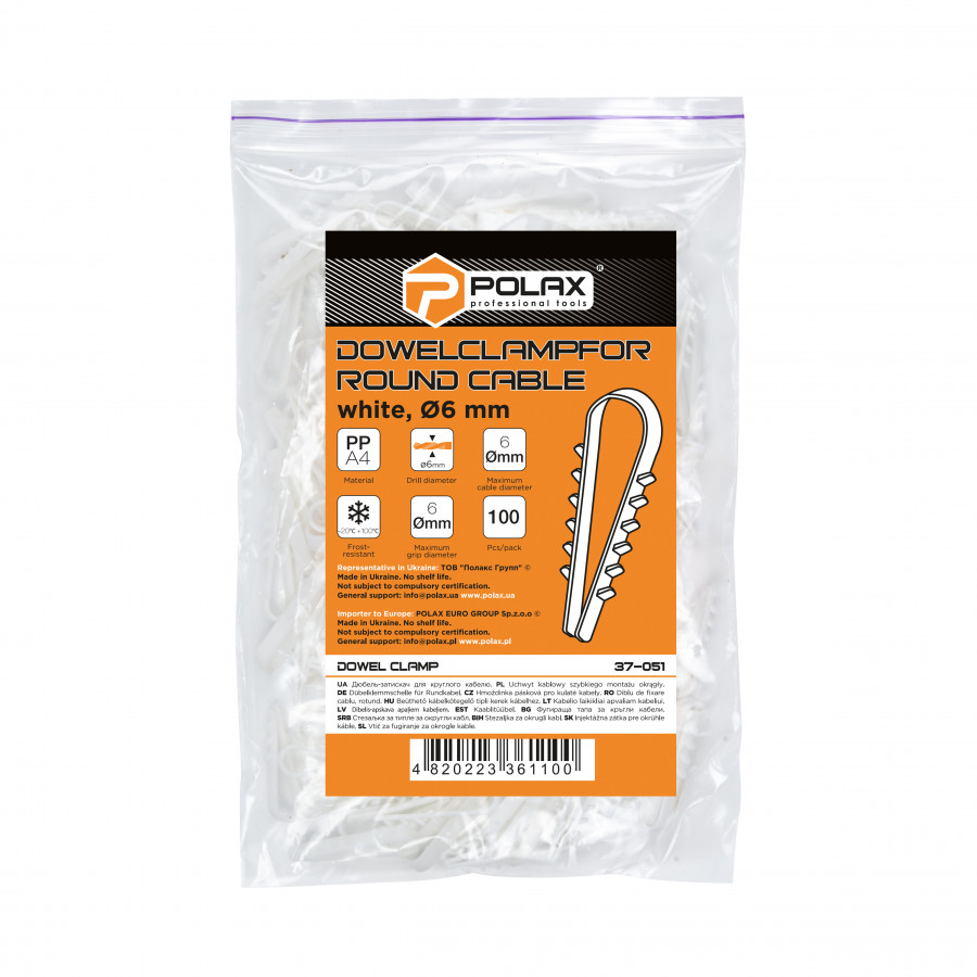 Теги: Дюбель-ялинка (затискач) для круглого кабелю Polax D 6 білий (37-051), , 37-051, Polax, Дюбель - зажим, Дюбель-зажим для круглого кабеля, Крепежный инструмент