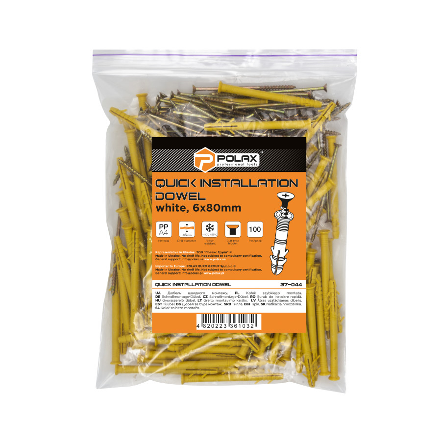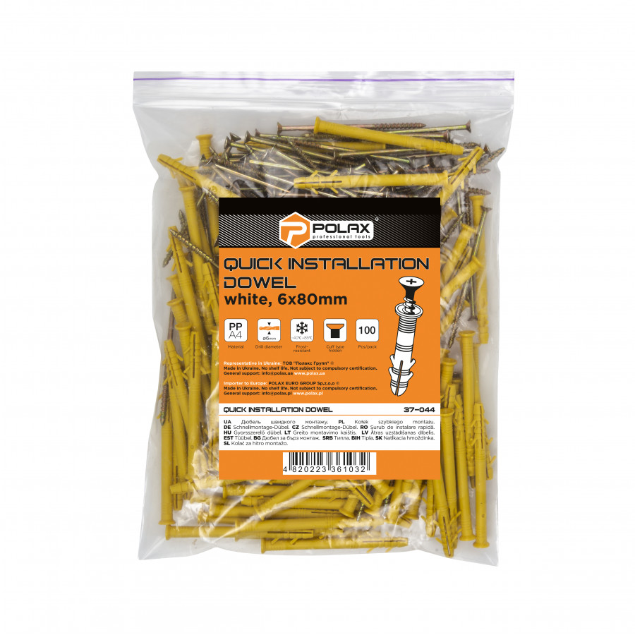 Теги: Дюбель швидкого монтажу Polax потайний 6 x 80 мм 100 шт. (37-044), , 37-044, Polax, Дюбели, Дюбель Потай, Крепежный инструмент