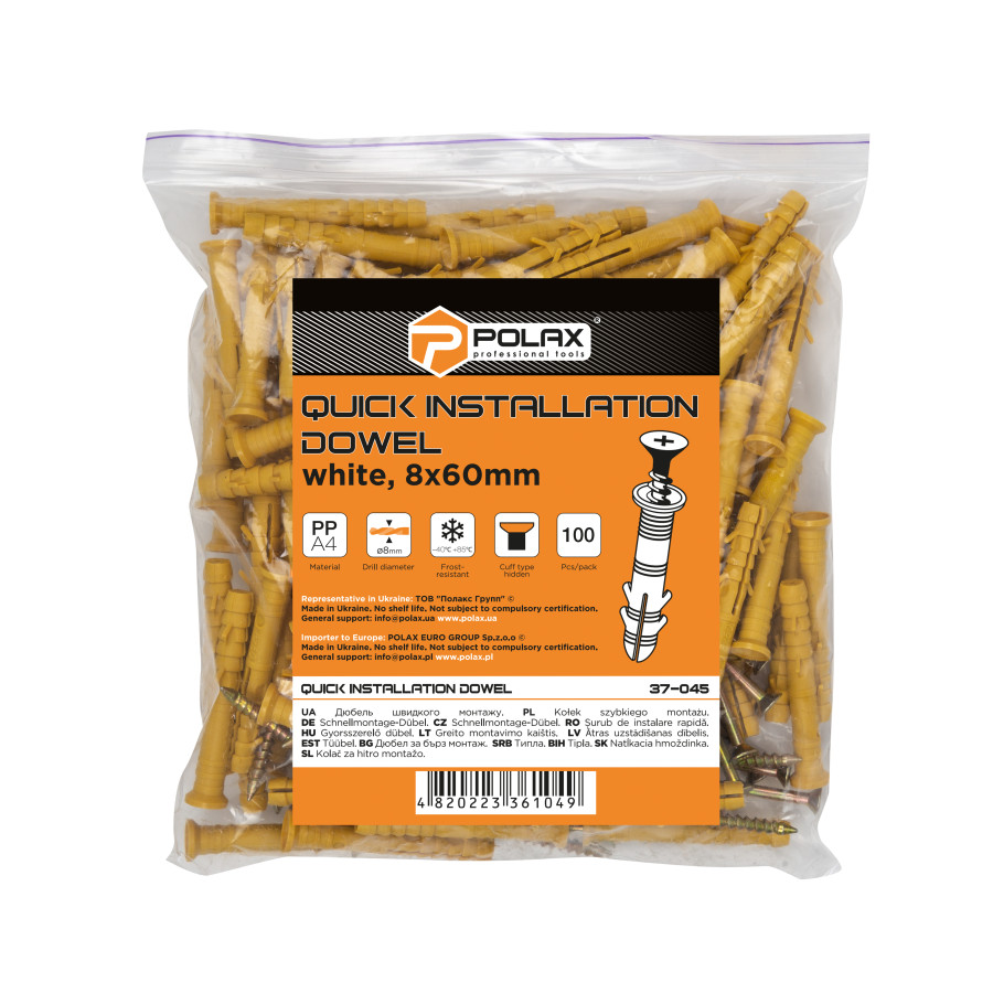 Polax — це бренд, що відомий своєю якістю та надійністю. Дюбелі швидкого монтажу цього виробника широко використовуються професіоналами та майстрами-аматорами завдяки своїм властивостям: