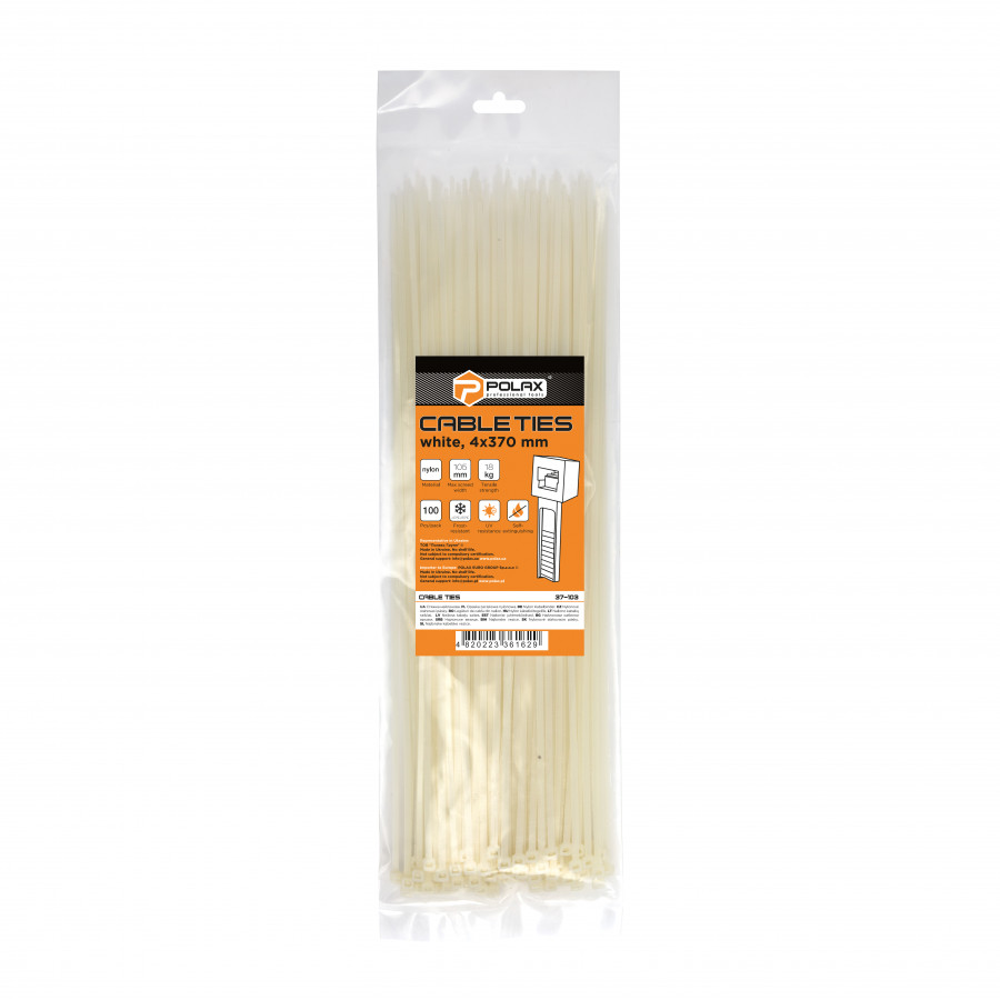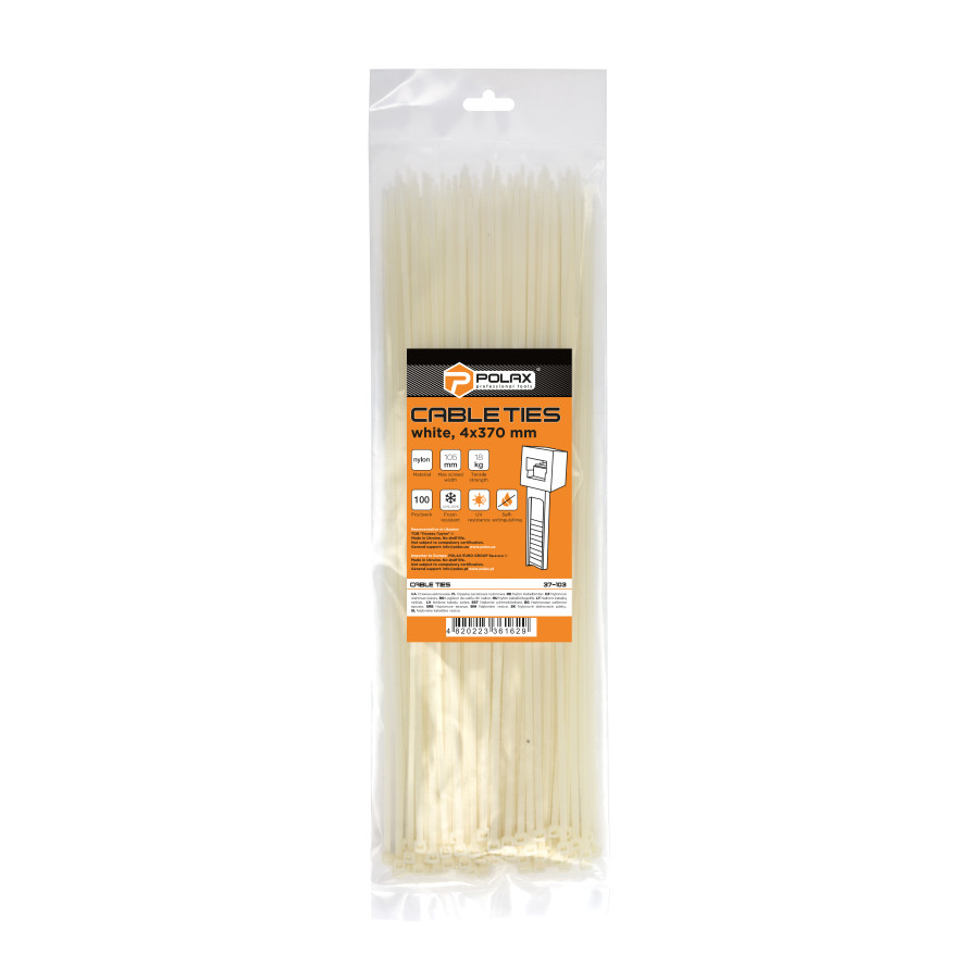Хомут пластиковий (стяжка) Polax нейлонова 4 х 370мм, білий 100 шт. (37-103)