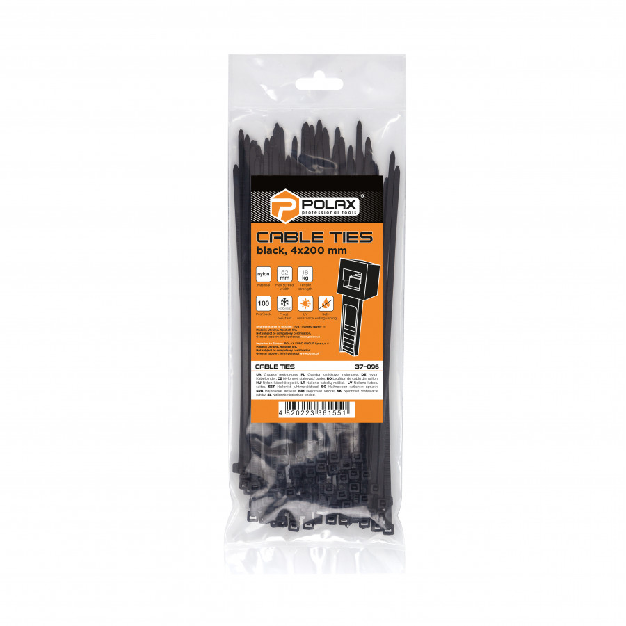 Теги: Хомут пластиковий (стяжка) Polax нейлонова 4 х 200мм, чорний 100 шт. (37-096), , 37-096,