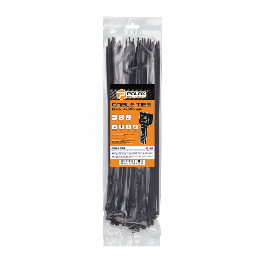 Теги: Хомут пластиковий (стяжка) Polax нейлонова 4 х 300мм, чорний 100 шт. (37-100), , 37-100, Polax, Крепежный инструмент, Хомуты (стяжки), Черные стяжки