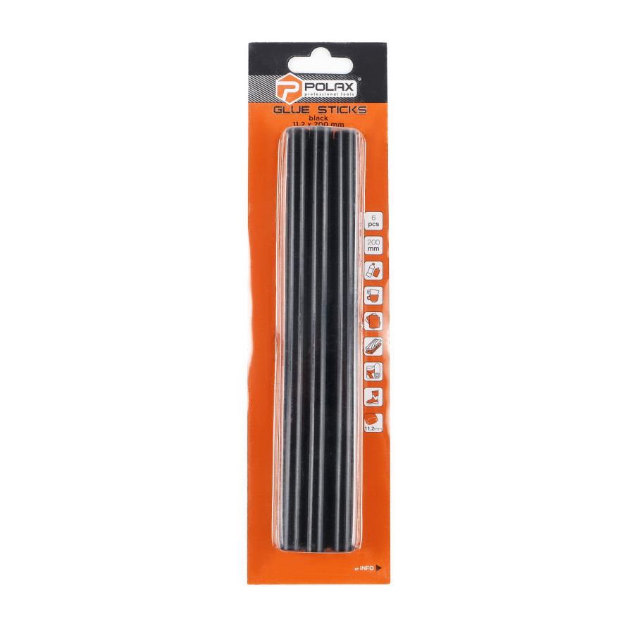 Стрижні клейові Polax чорні 11,2 х 200 мм 6 шт (32-008)