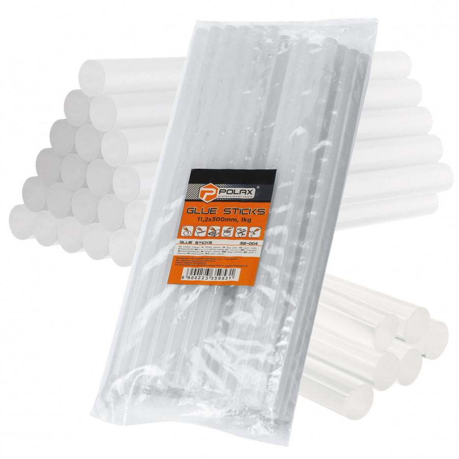 Стрижні клейові прозорі Polax 11,2 х 300 мм, 1 кг (32-004)