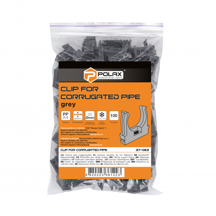 Теги: Кліпса для гофри Polax 20 мм 100 шт. (37-063), , 37-063,