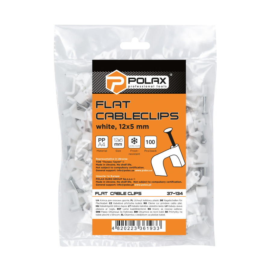 Теги: Скоба кабельна Polax плоска 12х5 мм з цвяхом, біла 100 шт. (37-134), , 37-134, Polax, Клипсы для плоских проводов, Клипсы для проводов, Крепежный инструмент