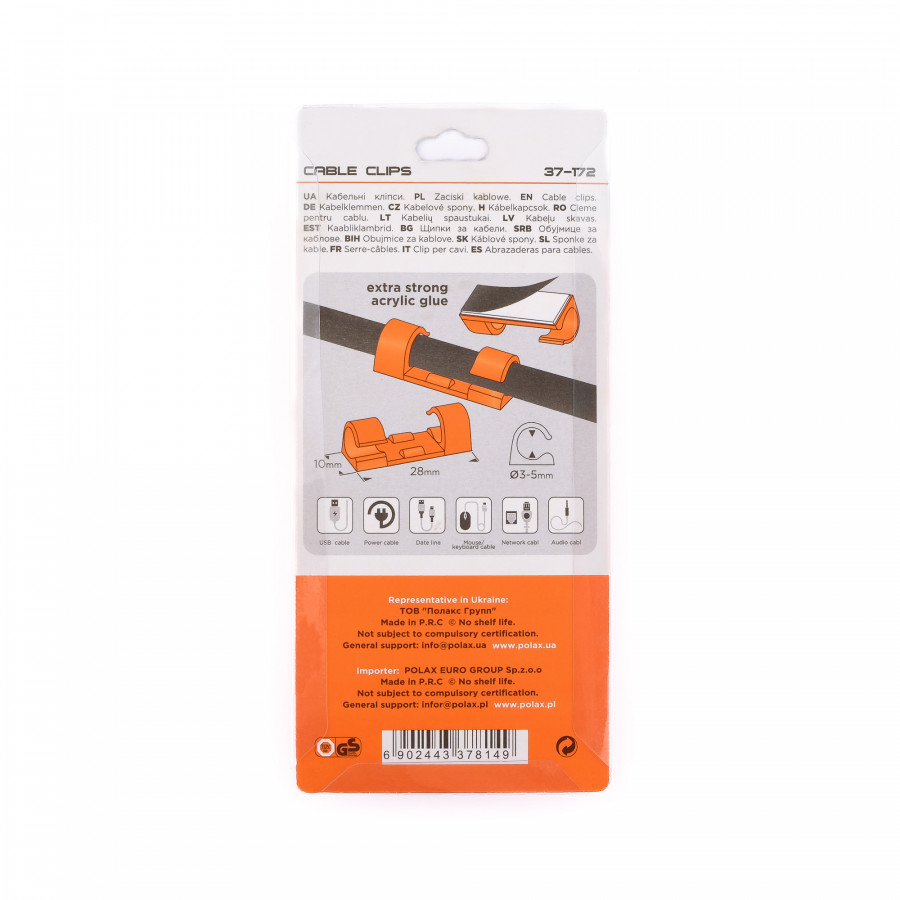Теги: Кліпса кабельна Ø3-5 мм Polax самоклеюча 28х10 мм, 20 шт (37-172), , 37-172, Polax, Клипсы для проводов, Клипсы самоклеящиеся, Крепежный инструмент