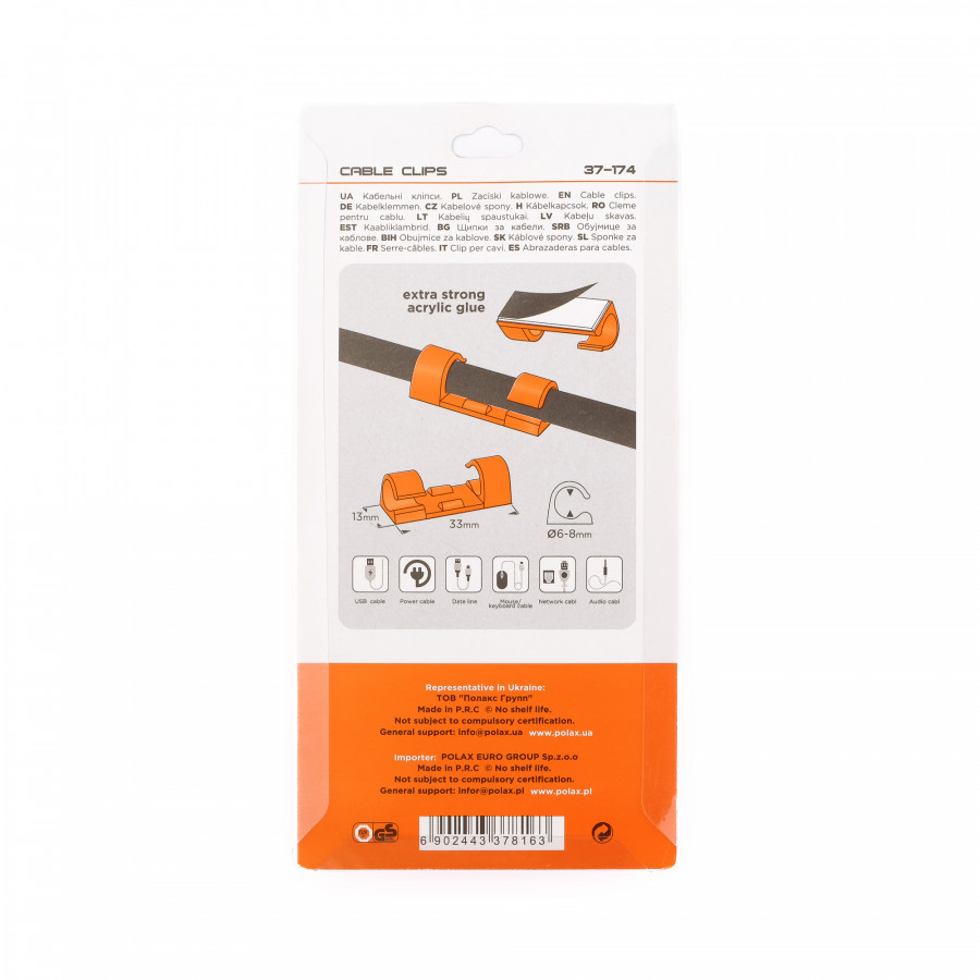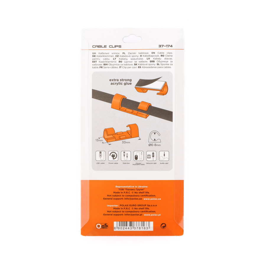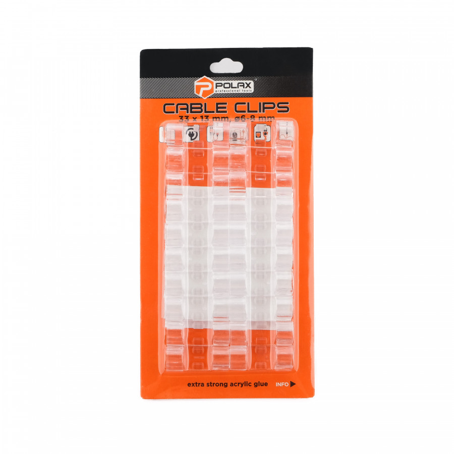 Теги: Кліпса кабельна Ø6-8 мм Polax самоклеюча 33х13 мм, 20 шт (37-174), , 37-174, Polax, Клипсы для проводов, Клипсы самоклеящиеся, Крепежный инструмент