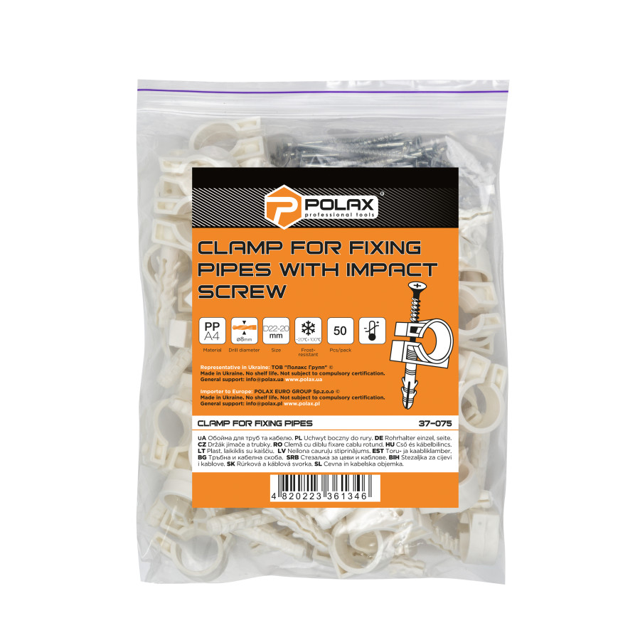 Теги: Обойма для труб і кабелю Polax D20-22 з ударним шурупом 50 шт. (37-075), , 37-075, Polax, Крепежный инструмент, Обоймы для труб и кабелей