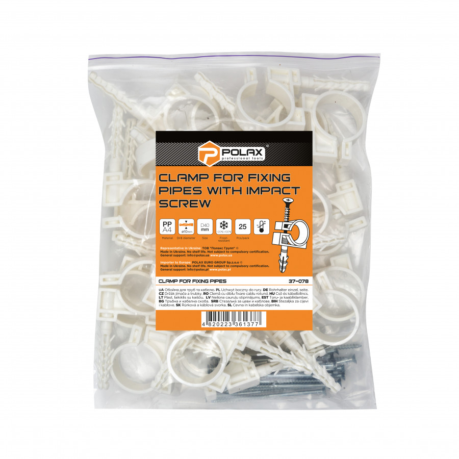 Обойма для труб і кабелю Polax D40 з ударним шурупом 25 шт. (37-078) – надійне кріплення для вашого проекту