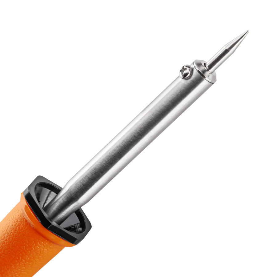 - Оптимальна потужність: 40 Вт – це ідеальний показник для точних та безпечних паяльних робіт з електронікою, проводкою, аксесуарами чи запчастинами.