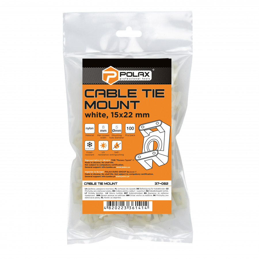 Майданчик під кабельну стяжку Polax 22 х 15 мм, білий 100 шт. (37-082) – Надійне рішення для організації кабелів
