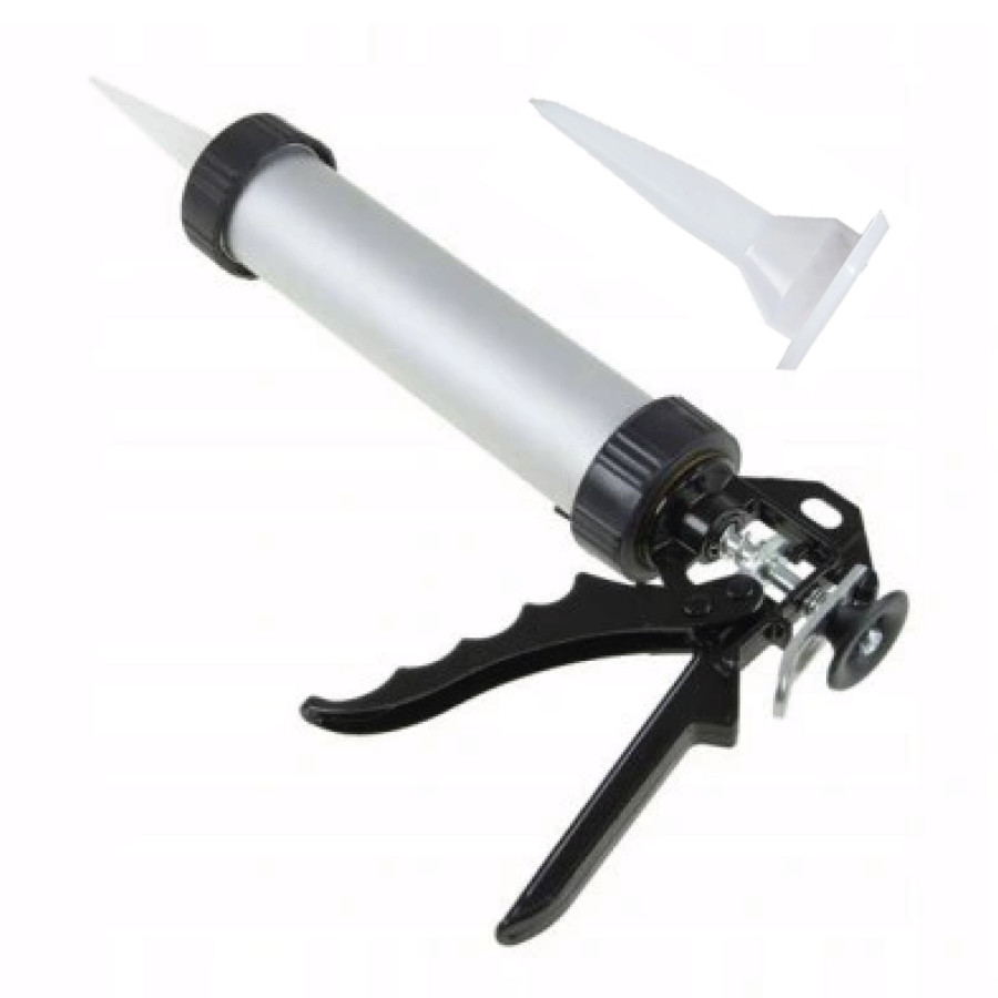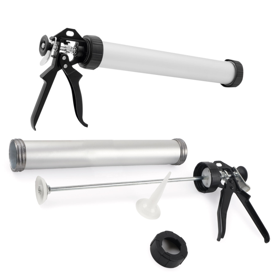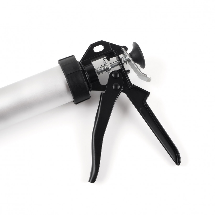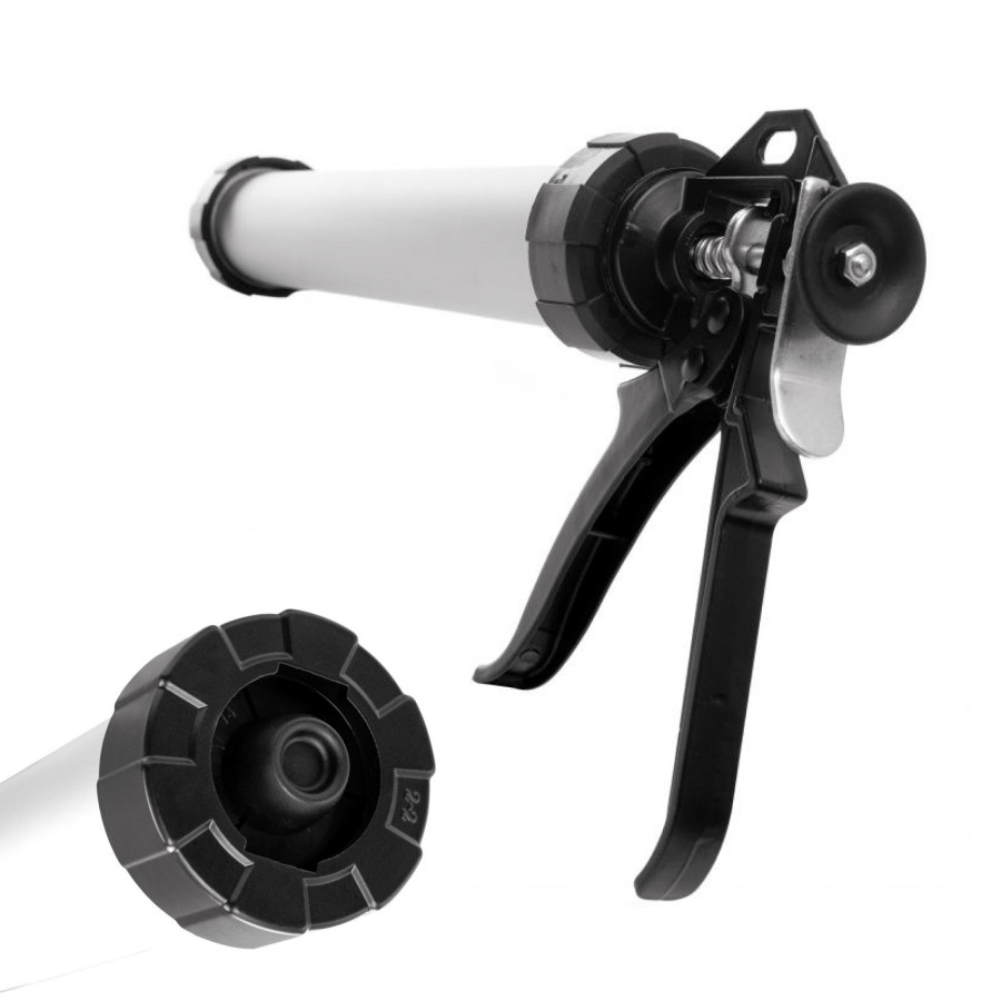 - Закрита конструкція з тубою – дозволяє використовувати стандартні картриджі об'ємом до 300 мл, забезпечуючи чистоту та акуратність під час роботи.