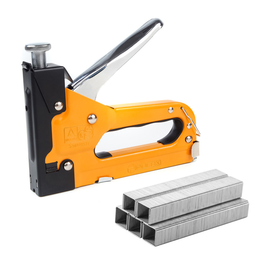 - Комплектність. У наборі ви отримуєте степлер та 1000 скоб розміру 10х11.3 мм, що дозволяє почати роботу одразу після покупки.