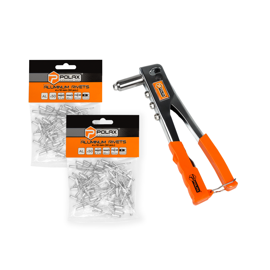 Огляд набору Polax: пістолет для заклепок хромований і заклепки 4 х 10 мм, 2 уп (337-02)