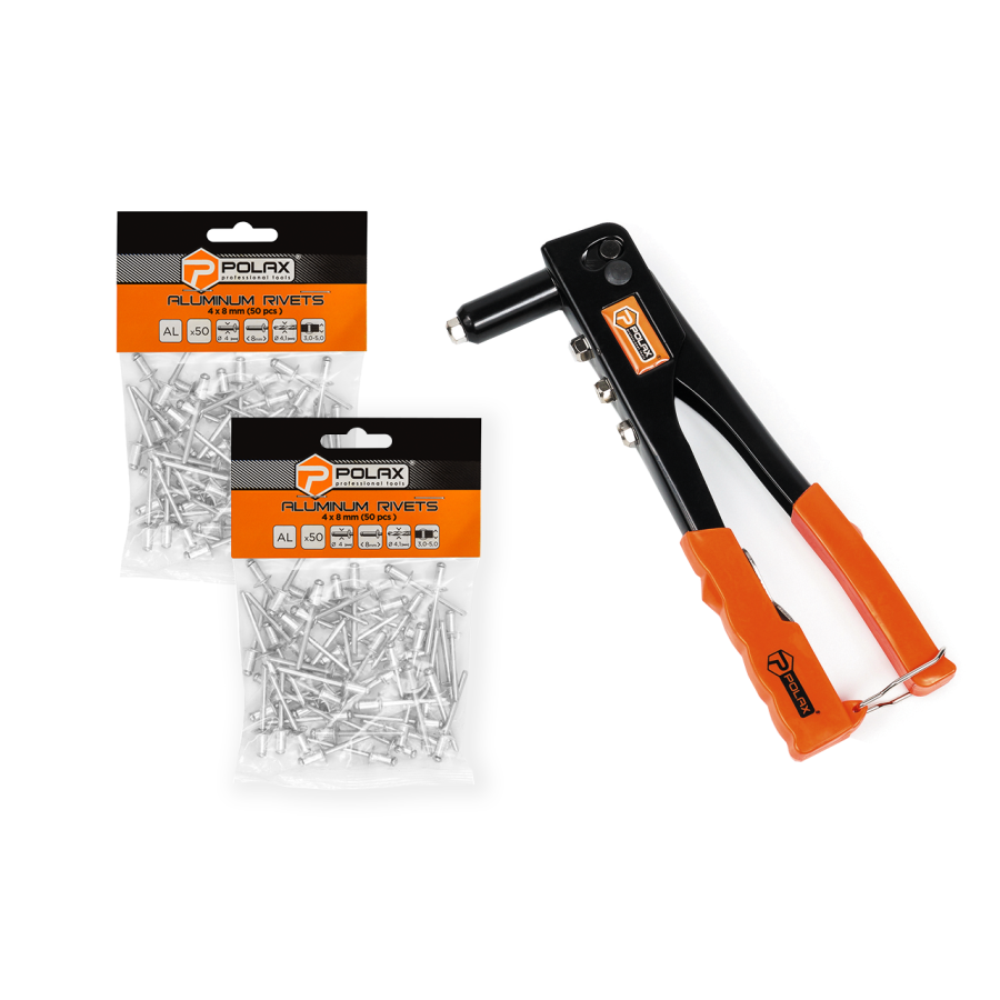 Набір Polax пістолет для заклепок "Стандарт" і заклепки 4 х 8 мм, 2 уп (337-04)