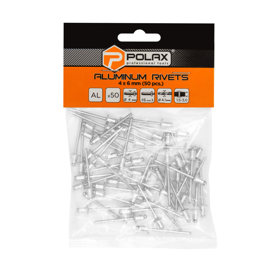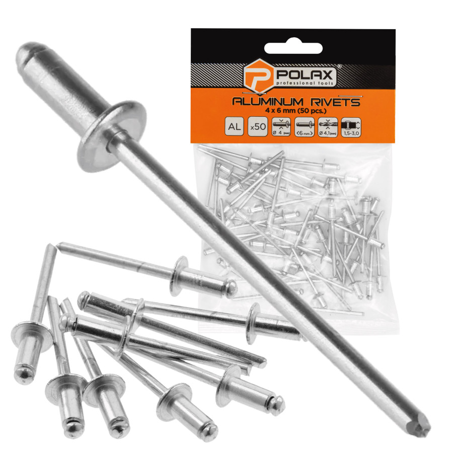Завдяки своїй універсальності, заклепки Polax ідеально підходять для будь-яких ремонтних робіт як у майстерні, так і вдома. Вони забезпечують надійне з'єднання, яке не розхитується з часом, стійке до вібрацій і механічних навантажень.