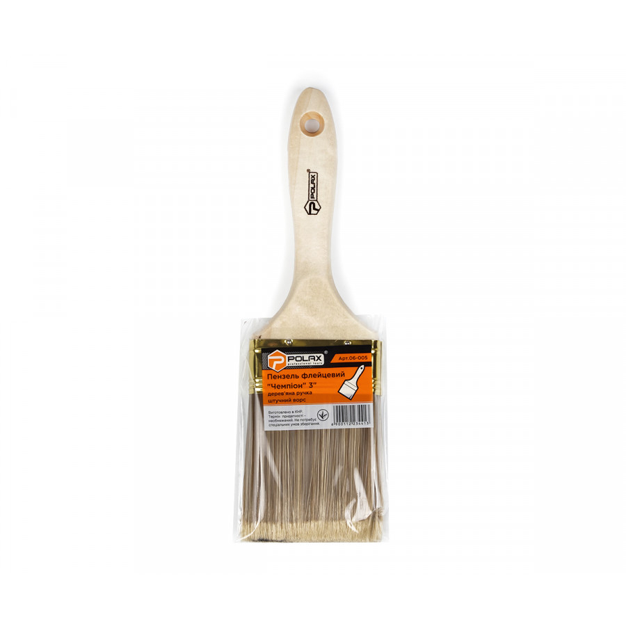 Пензель флейцевий Polax 3" тип "Чемпіон" професійний, штучний ворс, дерев'яна ручка (06-005)