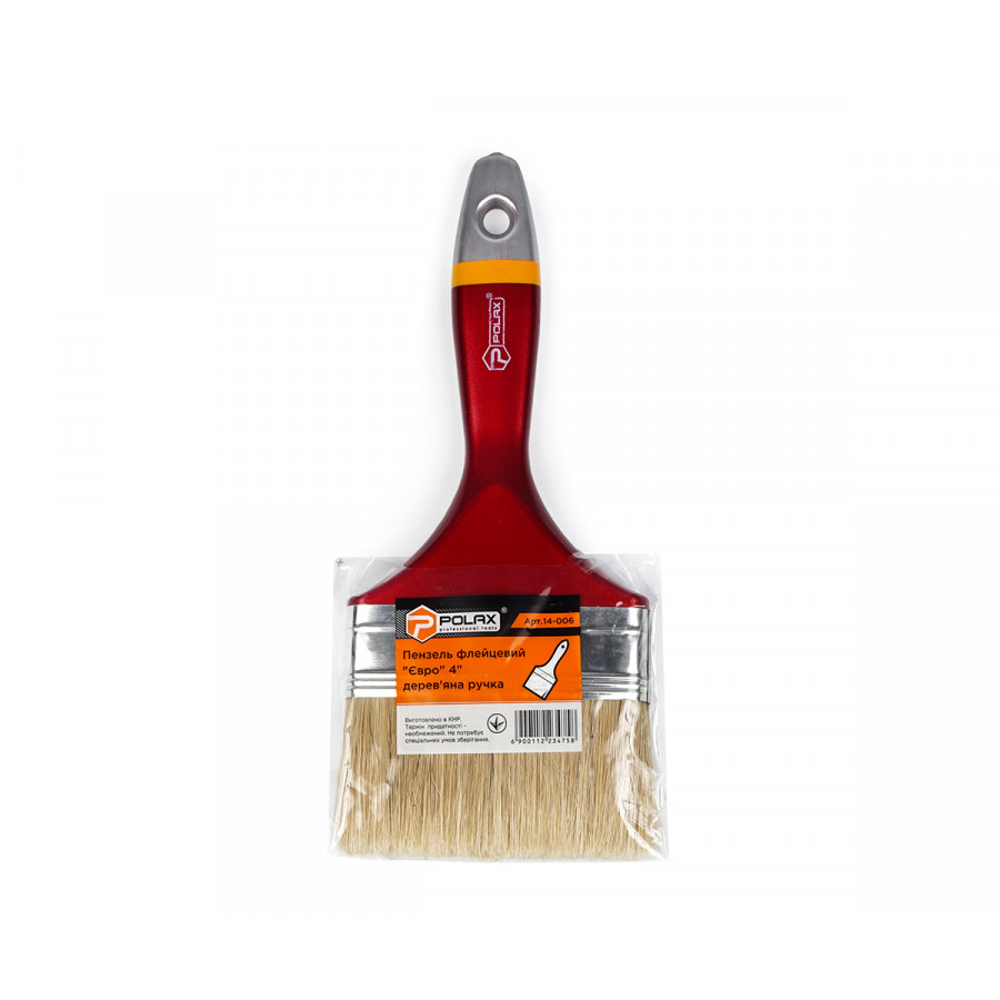Пензель флейцевий Polax 4" професійний, змішаний ворс, дерев'яна ручка, тип "Євро" (14-006) – якість для професіоналів