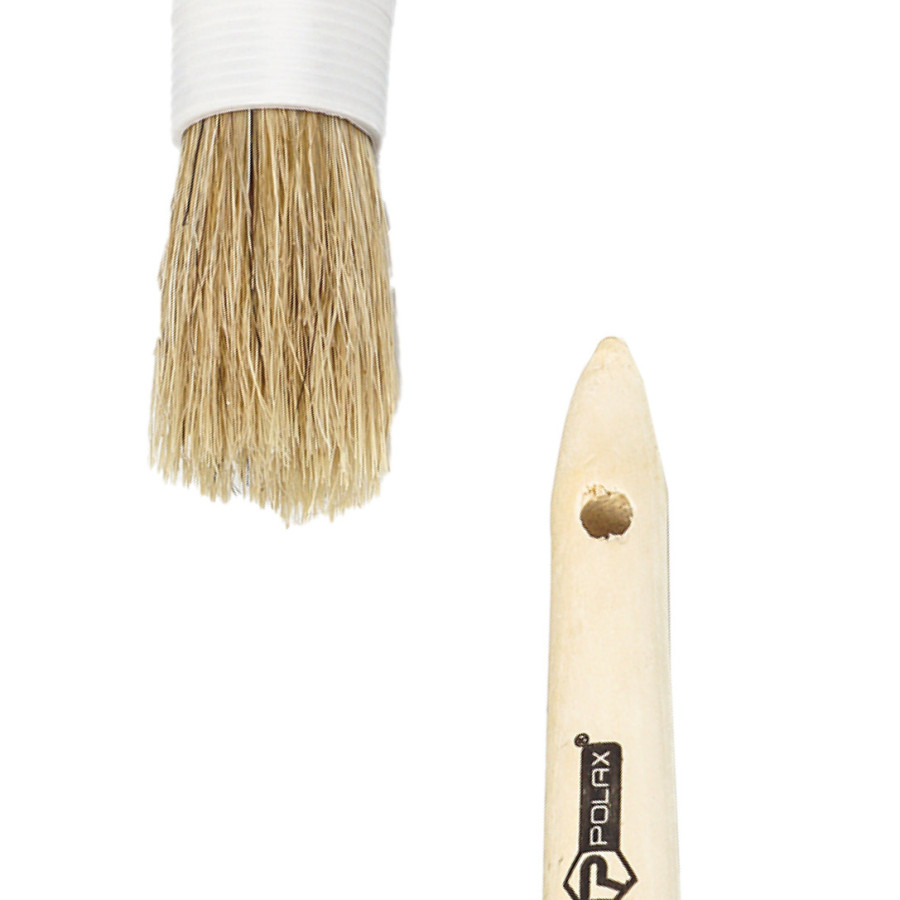 Круглий пензель Polax №4/25мм успішно поєднує в собі традиційні рішення і сучасні стандарти якості. Змішане волокно ворсу — це гарантія ідеального всмоктування та розподілу фарби, а кругла форма дозволяє використовувати пензель для реставраційних, декоративних і побутових робіт з різними фарбами або лакофарбовими матеріалами на різних поверхнях.