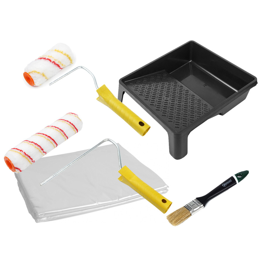 - Повний комплект – все необхідне в одному наборі: валики "Роял", ванночка для фарби, пензель "Англійський" 1" та захисна плівка. Вам не потрібно купувати додаткові інструменти окремо.