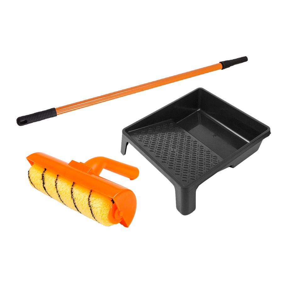 - Комплексний підхід: У комплекті є всі ключові інструменти для фарбування стелі – валик, телескопічна ручка та малярська ванночка.
