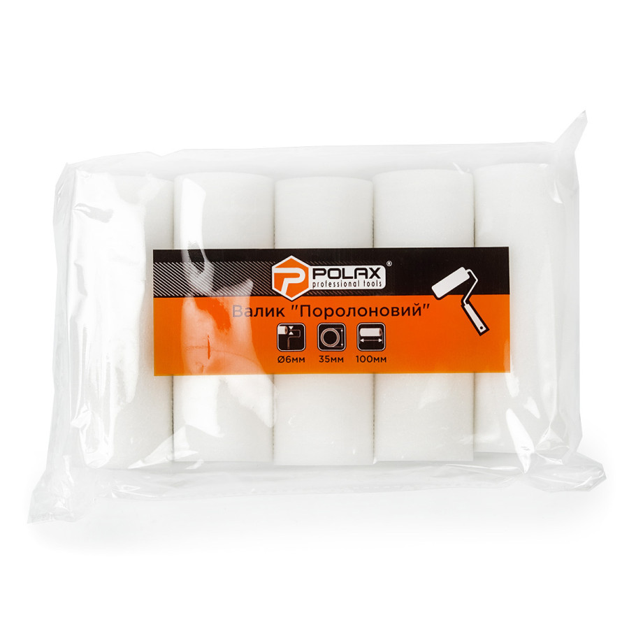 Теги: Валик "Поролоновий" 6х35х100 мм Polax (1-03), , 1-03, Polax, Валики для стен, Валики поролоновые, Малярный инструмент