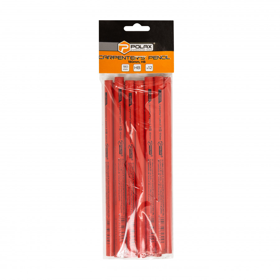 Олівець Polax столярний по дереву виготовлений з урахуванням потреб майстрів, які цінують точність, зручність та довговічність інструментів. Твердість грифеля HB дозволяє робити чіткі, але не надто тверді лінії, які легко видаляються або коригуються у процесі роботи. Завдяки оптимальній довжині 180 мм, інструмент зручно тримати в руці навіть тривалий час без відчуття втоми.