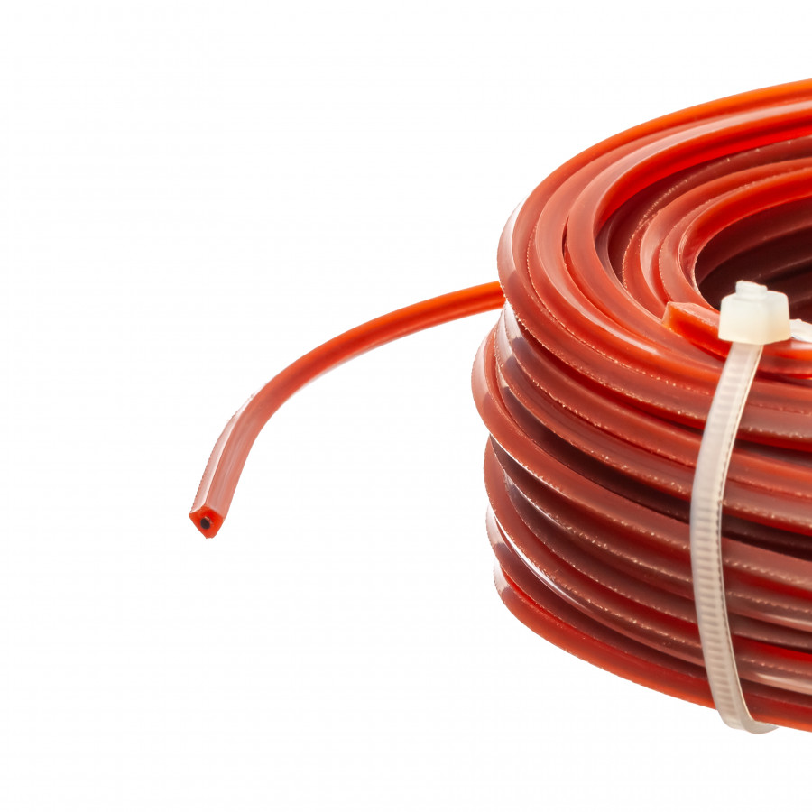 Форма "квадрат з кордом" забезпечує рівний та чистий зріз, мінімізує залипання трави на жилці та підвищує ефективність роботи. Завдяки оптимальному діаметру 2,4 мм, жилка не лише підходить для більшості стандартних тримерів, а й витримує значні навантаження без розривів чи втрати форми.
